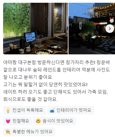 대구 맛집 BEST 5 알아보겠습니다. ※ 대구맛집 " 밥을짓다 " - 부모님 모시고 가기 좋은 식당 팔공산 맛집 * 찐리뷰 "식당 분위기도 좋고, 음식도 예쁘게 나와요." 연인끼리 가면 좋은 곳이라는 생