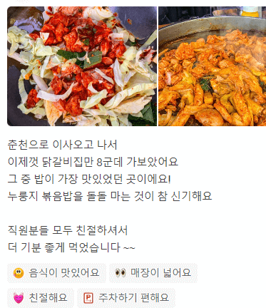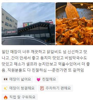 - 매장이 너무 깨끗하고 닭갈비도 너무 신선하고 맛있었어요!