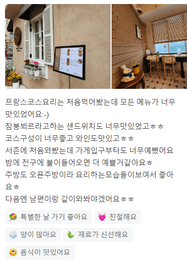 " 프랑스코스요리는 처음 먹어봤는데 모든 메뉴가 너무 맛있었어요 "